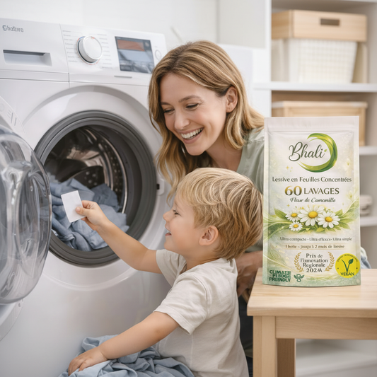 Lessive en Feuilles Bhali – Pack x2 | 120 Lavages Écologiques Fleur de Camomille